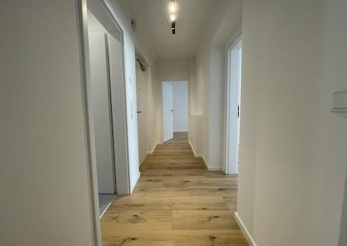 Sie betreten die frisch sanierte Wohnung über den Flur, in welchem Sie ausreichend Platz für eine Garderobe vorfinden. Von hier gelangen Sie zunächst in die geräumige Küche welche mit einer Einbauküche ausgestattet ist.