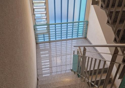 Die Wohnung ist mit Parkettboden ausgestattet, ein Parkplatz befindet sich direkt vor Eingangstür. Es gibt einen französischen Balkon und ein Kellerabteil.