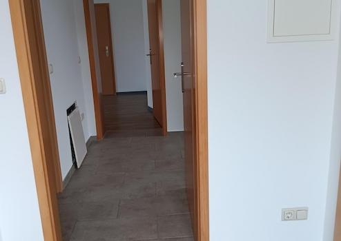 Diese gemütliche und helle 4-Zimmer Wohnung (Wohnzimmer, Schlafzimmer und 2 Kinderzimmer) mit ca. 98 m² Wohnfläche befindet sich im Erdgeschoss eines Wohn- und Geschäftshauses in Dingelstädt. Die Wohnung verfügt über ein Badezimmer mit Dusche und Fußbodenheizung, inkl. Waschmaschinen- und Trockneranschluss, sowie einem Abstellraum innerhalb der Wohnung. Ein Stellplatz, ein separater Fahrrad- und Geräteraum gehören ebenfalls zur Eigentumseinheit. Die Wohnung wurde im November/Dezember 2025 umfassend saniert. (Bad komplett neu) Alle Zimmer sind mit Kunststoffböden ausgestattet, ausgenommen Küche und Flur. Diese Räume wurden hochwertig gefliest.