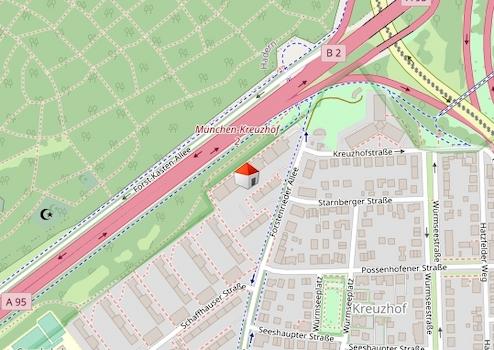 Anbindung: Nur wenige Gehminuten zum Südpark, der U-Bahnstation „Forstenrieder Allee“ (U3) und den dort befindlichen Einkaufsmöglichkeiten. Mit dem Auto kommt man leicht auf die A95 und ist von dort schnell in alle Richtungen unterwegs.