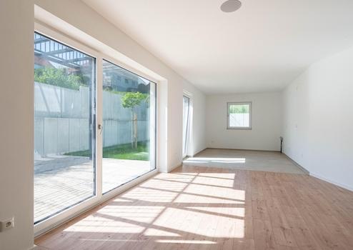 Der offen gestaltete Wohn- und Essbereich überzeugt durch helle Räume und einen direkten Zugang zur Terrasse, die zu entspannten Stunden im Freien einlädt. Große Fensterflächen sorgen für eine angenehme Lichtdurchflutung und unterstreichen den Neubaucharakter der Wohnung.