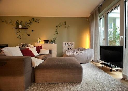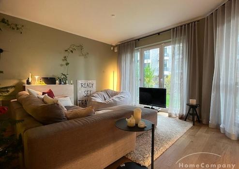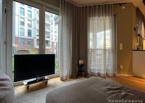 ***Sachsenhausen(8072343)Am Henninger Turm, Voll möblierte Neubauwohnung mit Privatgarten & Tiefgaragenstellplatz