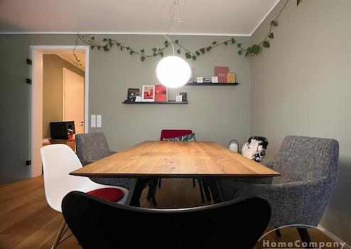 Neu möblierte Dachgeschoßwohnung mit Blick ins Grüne. Wohnen: großer Wohnbereich, mit Zugang zur Terrasse. Küche: separate Einbauküche mit allen Geräten und Spülmaschine Essbereich: im Wohnzimmer mit 4 Plätzen ...