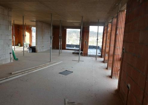 Der Rohbau ist fertiggestellt und der Innenausbau im Gange. Die Bezugsfertigkeit ist für Sommer 2026 vorgesehen.