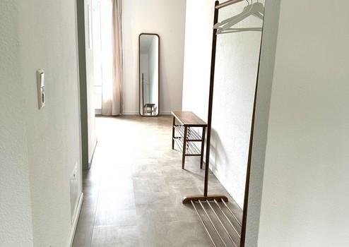 Durch die Fenster auf beiden Seiten ist die Wohnung sehr hell und freundlich. Praktisch ist auch der kleine Dielenbereich, den man beim Eintreten in die Wohnung zunächst betritt.