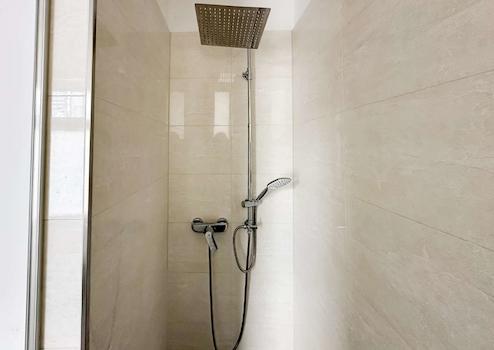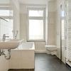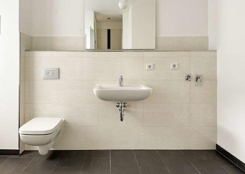 Zwei modern ausgestattete Badezimmer bieten Komfort für den Alltag. Das erste Tageslichtbad verfügt über eine Badewanne, das zweite Bad mit Fenster ist mit einer geräumigen Dusche und einem Waschmaschinenanschluss ausgestattet. Hochwertige Fliesen in Anthrazit und Beige sowie stilvolle Deckenspots sorgen für ein modernes, elegantes Ambiente.