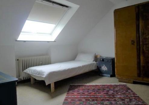 Das Doppelhaus aus den 50-er Jahren ist ursprünglich für 4 Familien konzipiert. Es befindet sich teilweise im Originalzustand, teilweise wurde es abschnittweise saniert.
