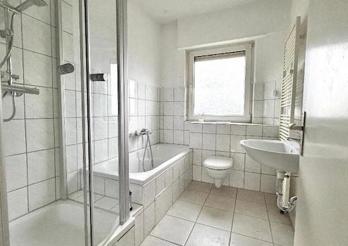 Das helle Tageslichtbad ist funktional ausgestattet und verfügt sowohl über eine Badewanne als auch über eine Dusche, wodurch Komfort und Alltagstauglichkeit ideal miteinander verbunden werden.