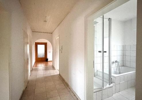 Großer Eingangsbereich, Diele, 3 Zimmer – ein Zimmer davon mit Balkonzugang, Tageslichtbad mit Wanne und Dusche