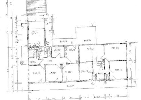 Zimmer 14,60 m², Zimmer 13,66 m², Zimmer 15,07 m², Zimmer 10,53 m², Zimmer 14,35 m², Zimmer 17,92 m², Zimmer 20,77 m², Zimmer 7,26 m², Küche 11,63 m², Bad/WC 4,35 m², WC 1,98 m², WC 0,96 m², Dusche 1,43 m², Abstellraum 25,41 m², Flur/Treppenhaus 8,89 m² + 2,86 m² + 8,54 m².