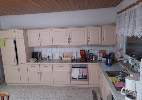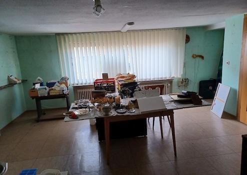 Das Wohnhaus wurde in zwei Bauabschnitten erstellt. Der Altbau wurde bis 2000 stetig renoviert. Der Neubau wurde 1972 in massiver Bauweise erstellt. Das Kellergeschoß wurde im Jahre 1980 zu einer Gasstätte (Tanzkeller) umfunktioniert, der aber seit ca. 15 Jahren nicht mehr betrieben wird. Er dient jetzt als Lagerraum. Im EG befindet sich z. Z. eine Massagepraxis; das Dachgeschoss ist im Ausbau. Geheizt wird mittels einer Ölzentralheizung. Zu dem Anwesen gehören ein Lagergebäude sowie zwei Garagen. Die Massagepraxis im EG sowie die Wohnung im OG sind vermietet.