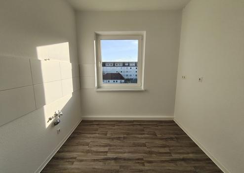 + helle Küche mit Fenster, modernem Fliesenspiegel & neuem Vinylbodenbelag in Holzoptik