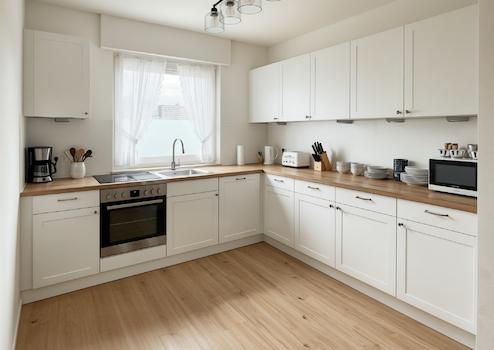 Zudem gelangen Sie vom Flur aus links in die separate Küche, die Ihnen zusätzlichen Komfort und eine klare Trennung der Wohnbereiche bietet.