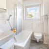 Ebenso freundlich und ansprechend ist das hell geflieste Vollbad mit Fenster.