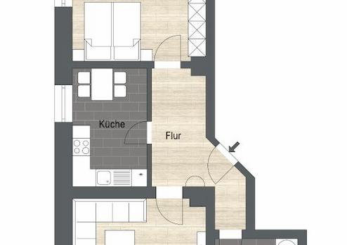 - 2 separate Zimmer, vom Flur aus sind alle Zimmer zu erreichen