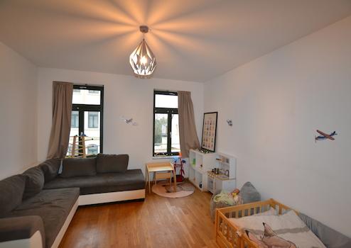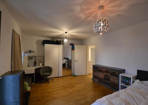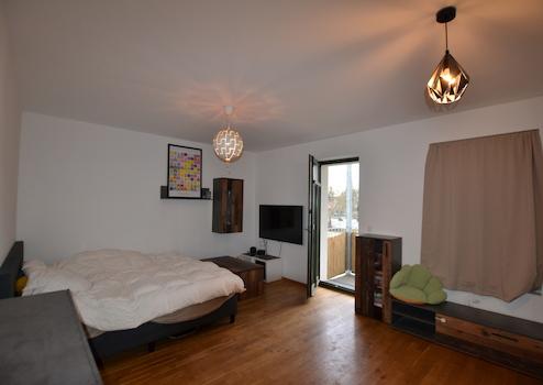 Das großzügige Wohnzimmer mit Zugang zum Balkon lädt zum Entspannen ein und bietet zusätzlichen Raum im Freien. Dank der Fußbodenheizung genießen Sie in der gesamten Wohnung ein behagliches Wohnklima.
