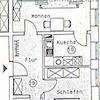 Alle Räume sind vom Flur aus begehbar, mit Parkett- und Fliesenboden ausgestattet.