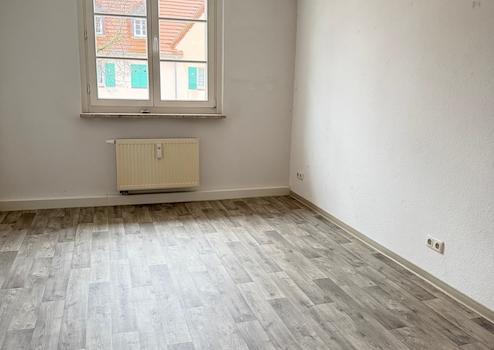 Unser Mietobjekt befindet sich in einem Vierparteienhaus und ist Teil des denkmalgeschützten Ensembles der Gartenstadt Lauta. Die Fassade mit grünen Fensterläden und grüner Hauseingangstür wirkt freundlich und einladend. Jeder