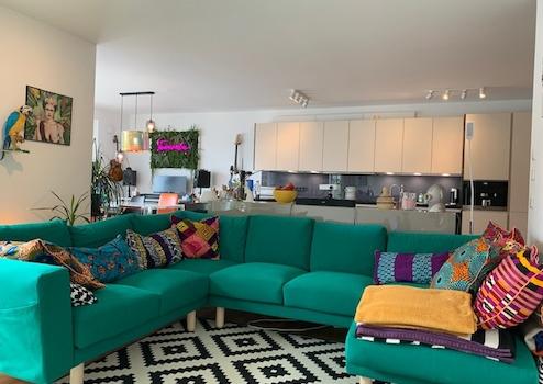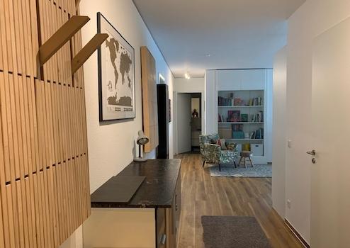 Diese hochwertig in frischen Farben möblierte 3-Zimmerwohnung im 2. Obergeschoß lässt sich bequem mit dem Aufzug erreichen.