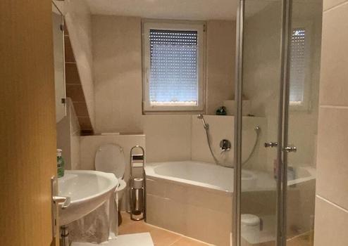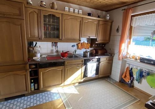 Es ist eine Garage vorhanden sowie zusätzlich ein Carport. Die Küche ist baujahrstypisch und im Preis inbegriffen. Neben einem Gäste WC mit Tageslichtfenster, gibt es auch noch zwei Badezimmer im Haus. Beide mit Tageslichtfenster. Oben mit Wanne und Dusche, unten mit Dusche. Der Keller bietet neben der Ölheizung auch einen Partyraum, hier wurden schon tolle Feste gefeiert. Im Partyraum tritt zeitweise Feuchtigkeit bei Starkregen ein. Eine Abdichtungsprüfung ist sinnvoll.