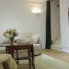 Offene großzügige Wohflächen mit Gipsstuck, Feinsteinzeug-Marmorböden, gemauertem Marmorkamin.