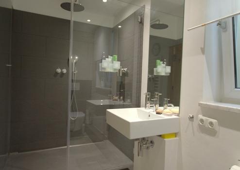 Walk in Regendusche, WC und Bidet und Waschtisch
