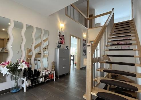 Dieses freistehende Einfamilienhaus überzeugt durch seine großzügige, helle Raumaufteilung, hochwertige Ausstattung und einen gepflegten Zustand. Auf drei Ebenen bietet es rund 381 m² Wohnfläche – ideal für Familien mit Anspruch an Komfort und Stil.