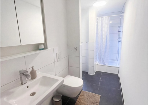 Das Badezimmer ist funktional und modern ausgestattet und verfügt über eine Dusche. Insgesamt eignet sich die Wohnung ideal für alle, die eine hochwertig möblierte Lösung mit guter Ausstattung suchen.
