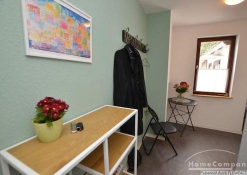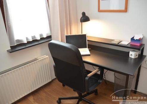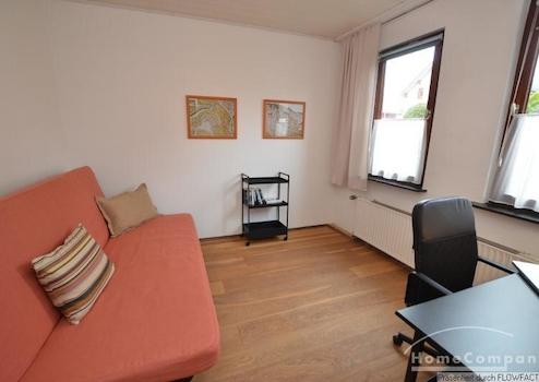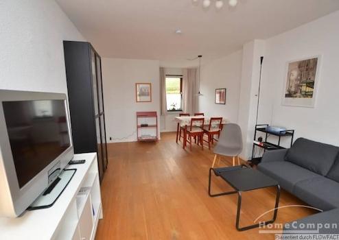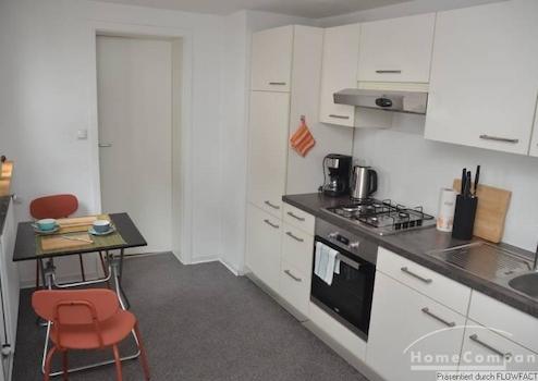 Diese Tolle 3 Zi.-Wohnung wurde nach einer Renovierung sehr geschmackvoll neu möbliert. Das Wohnzimmer mit einem Parkettfußboden teilt sich in einen gemütlichen Teil, mit einer Couchgarnitur und TV und einem Essbereich für 4 Personen auf. Über den Flur gelangt man in ein Zimmer, das als zweites Schlafzimmer oder Arbeitszimmer genutzt werden kann. Am Ende das Flures befindet sich die voll ausgestattete Küche mit einem Tisch zum Frühstücken. Von hieraus betritt man die großzügige Terrasse. Hinter der Küche befindet sich das ruhige Schlafzimmer mit einem Doppelbett und einem Kleiderschrank. Die Wohnung ist für ein Paar oder auch 2 Kollegen geeignet. Bei 2 Personen beträgt die Miete 1200,00€.