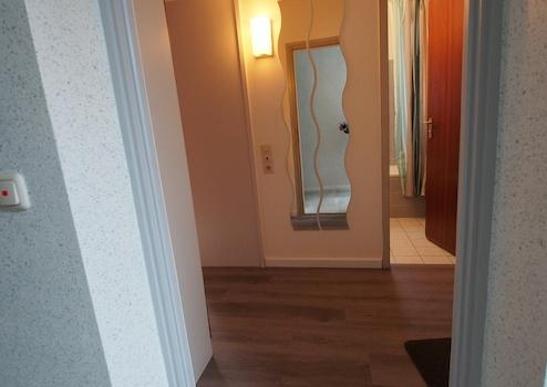 Das Apartment verfügt über einen kleinen Flur mit Garderobe, von dem aus das Bad und das Zimmer abgehen.