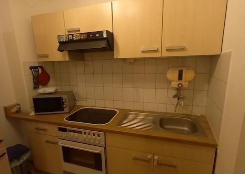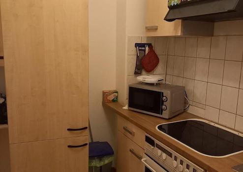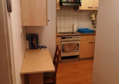 Die Wohnung verfügt über einen gemütlichen Küchenbereich und ladet Sie zum Kochen ein. Der Essplatz liegt angrenzend zur Küche.