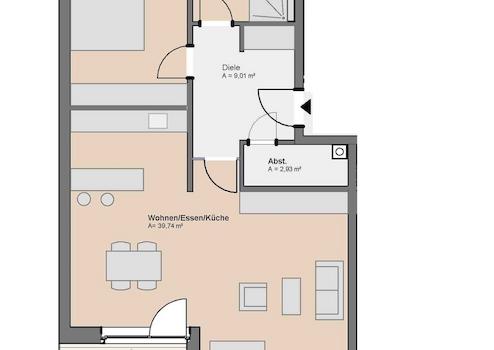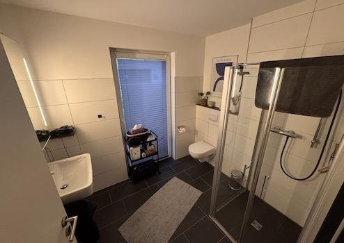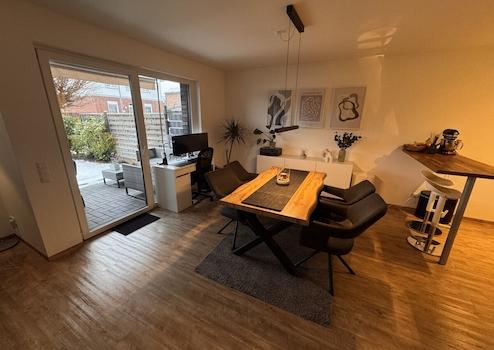 Die moderne 2-Zimmerwohnung mit Terrasse befindet sich in einem Mehrfamilienhaus mit insgesamt sechs Wohneinheiten. Aufgeteilt in Wohn/-Esszimmer mit offener Küche, Schlafzimmer, Abstellraum mit Waschmaschinenanschluss, Bad mit bodengleicher Dusche und WC. Zur Wohnung gehören ein Kellerraum und Kfz-Stellplatz.