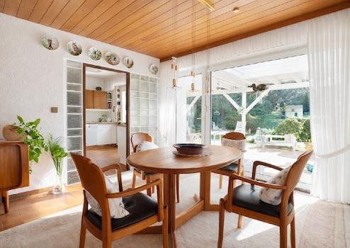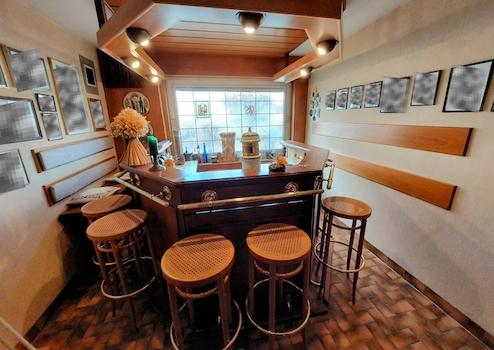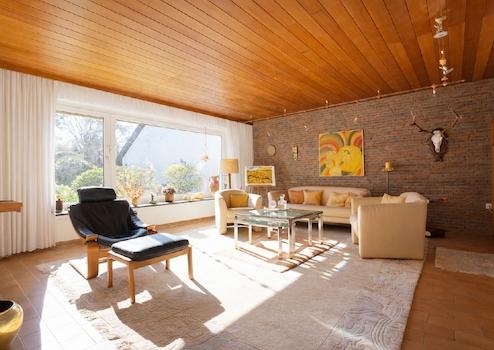 Vom Hausflur aus liegt rechts das Büro/Arbeitszimmer, links das Gäste-WC. Weiter geradeaus befindet sich auf der rechten Seite die gemütliche Bar, dann das Tageslichtbad mit Wanne und Glasdusche sowie ein Zimmer, nutzbar als Schlafzimmer oder Esszimmer. Der sehr üppige Wohn- und Essbereich, links gelegen, mit der angrenzenden Küche gewinnt noch zusätzlich mit dem traumhaften Blick in den wunderschön angelegten Garten.
