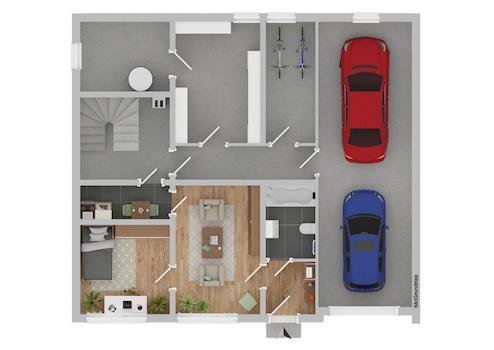 -Doppelgarage über die gesamte Tiefe des Hauses, 2 PKW hintereinander,