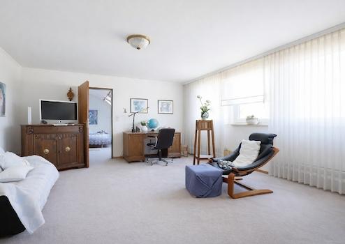 Im Untergeschoss befindet sich die Einliegerwohnung mit separatem Eingang. Diese Einheit verfügt über ein Schlafzimmer, einen Wohnraum, eine kleine Küchenzeile und ein Wannenbad. Ideal zur Vermietung, da der Zugang nicht über den Hausflur der Hauptwohnung erfolgt.