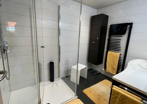 Besonders hervorzuheben sind das 2016 modern gestaltete Badezimmer mit großer Dusche sowie dem separaten WC, die beide den heutigen Ansprüchen gerecht werden. Die vor ca. 14 Jahren eingebaute Küche befindet sich in einem sehr guten Zustand. Die Besonderheit ist hier zusätzlich die Vorratskammer mit Kühlaggregat! Der offen gestaltete Wohn- und Essbereich bietet trotz der Schräge ausreichend Platz ohne sich eingeengt zu fühlen. Der Holzofenkamin sorgt für zusätzliche Gemütlichkeit und Wohlfühl-Atmosphäre in kühleren Monaten.