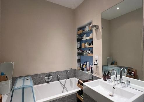 Die Wohnung verfügt über eine Einbauküche, die bereits in der Miete enthalten ist. In allen Wohnräumen ist hochwertiges Echtholzparkett verlegt, das für eine warme und elegante Wohnatmosphäre sorgt. Die Bäder sind gefliest und zeitlos gestaltet. Zusätzlich steht ein separates Gäste WC zur Verfügung, was den Wohnkomfort insbesondere für Besucher deutlich erhöht.