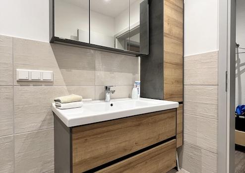 Die Möbel im Badezimmer sind bereits im Mietpreis beinhaltet und stehen Ihnen zur Verfügung.