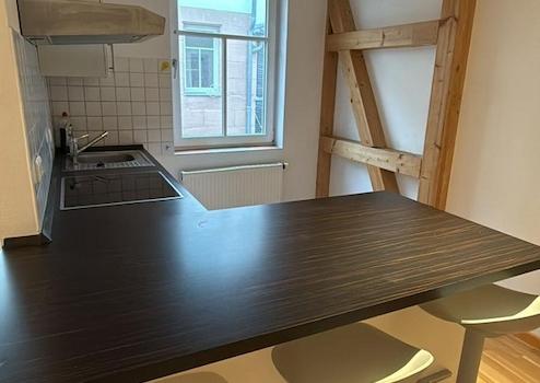 Die Wohnung wurde frisch für Sie vorbereitet: Alle Wände sind neu gestrichen, sodass Sie direkt einziehen können. Ein besonderer Blickfang ist die offene Küche mit integriertem Sichtgebälk, die dem Wohnbereich eine gemütliche Atmosphäre verleiht.
