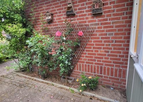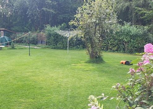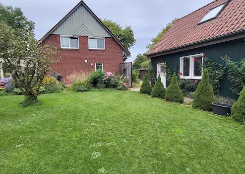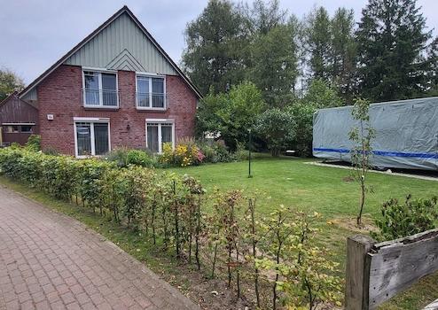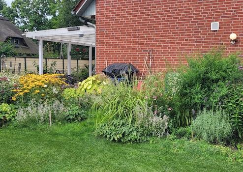 Hinten im Garten steht ein großes Gartenhaus. Zum Verweilen nach einem arbeitsreichen Tag lädt ein kleiner Teich mit großzügiger Sonnenterrasse ein. Ein sich anschließender Obstgarten mit diversen Obstbäumen und -sträuchern versorgt die Familie mit frischen Früchten. Auf den Rasenflächen können sich die Kinder austoben. Das Haus ist umgeben von schönen Blumenbeeten, die im Sommer ein echter Hingucker sind. Der hintere Gartenbereich ist von der Straße nicht einsehbar. Der Garten ist pflegeleicht angelegt. Zwei Rasenroboter, die übernommen werden können, sind fleißige Helfer. Ein Stellplatz für Wohnwagen/Wohnmobil ist vorhanden. Vor dem Grundstück befindet sich ein öffentlicher Parkplatz, der Ihren Gästen Abstellmöglichkeiten für ihre Fahrzeuge bietet.
