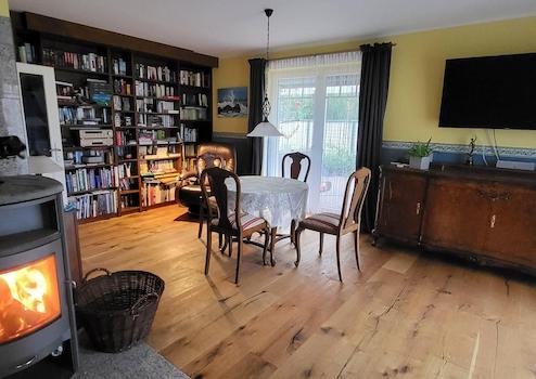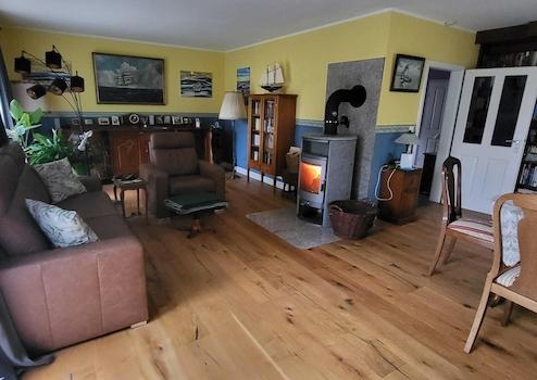 Eiche-Parkettfußböden im Wohn-/Esszimmer, zwei Räumen im OG, der Empore sowie auf der Treppe.