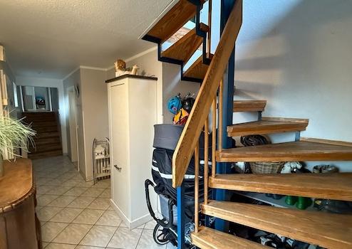 Modernisierungsbedürftiges Einfamilienhaus mit Garage und sonniger Terrasse im beliebten Musikerviertel in Husum Aufteilung: Erdgeschoss: kombiniertes Wohn- und Esszimmer mit Zugang zur Terrasse, Küche mit Einbauküche ...