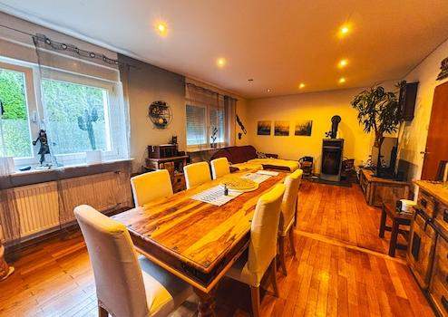 Dieses charmante Familienhaus empfängt Sie schon beim Betreten mit einer warmen, einladenden Atmosphäre. Das lichtdurchflutete Wohn- und Esszimmer bildet das Herz des Hauses: