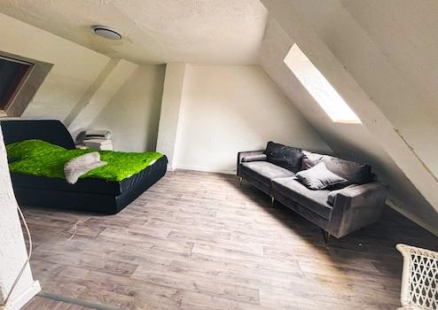 Das ausgebaute Dachgeschoss eröffnet einen offenen Wohnbereich, der vielseitig genutzt werden kann: als Gästebereich, Arbeitszimmer, Rückzugsort oder Spielzimmer.