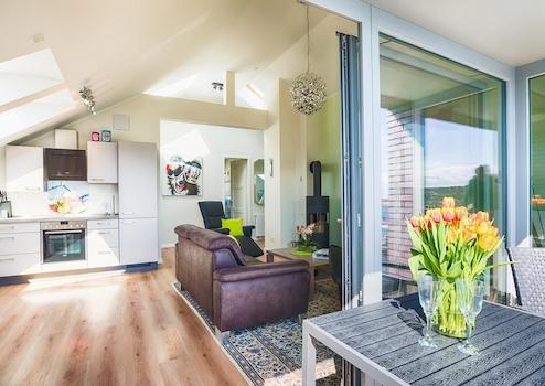 Willkommen im Apartment Ostseepanorama – Ihrer exklusiven Dachgeschosswohnung in direkter Lage am Yachthafen von Heiligenhafen!