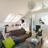 Die Wohnung bietet höchsten Komfort: Zwei Balkone mit Gartenmöbeln, ein Kamin für behagliche Stunden, drei Flachbild-TVs, zwei Fernsehsessel, ein Sofa sowie Radio und Internetanschluss. Die beiden Schlafzimmer sind mit Boxspringbetten ausgestattet, zusätzlich stehen ein Kinderreisebett und ein Hochstuhl bereit.