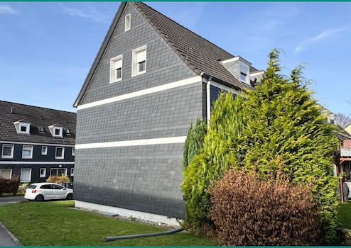 - Fassade mit Wärmedämmung aus 1985 mit Naturschiefer.