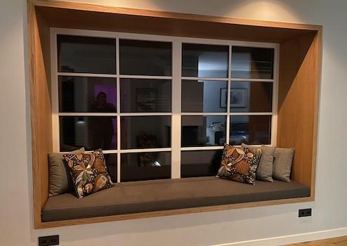 Das Herzstück des Hauses bildet der offene Wohn- und Essbereich mit hochwertiger Designküche. Ein stilvoll integrierter Kamin sowie ein gemütliches Sitzfenster gliedern den Raum optisch und schaffen eine besondere Wohnatmosphäre mit viel Licht und Behaglichkeit.