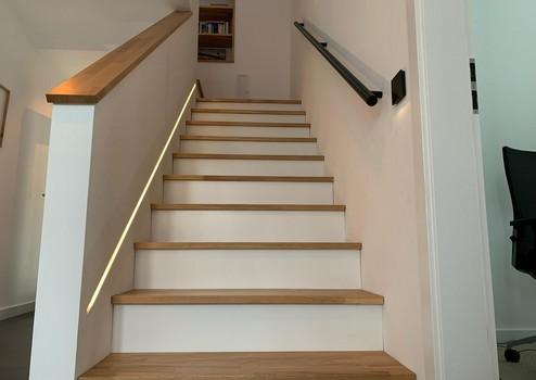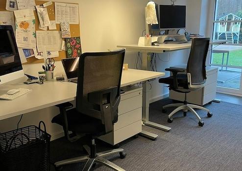 Bereits beim Betreten empfängt Sie ein großzügiger Eingangsbereich mit maßgeschneiderter Garderobe. Im Erdgeschoss befinden sich zudem ein modernes Gäste-WC, ein Hauswirtschaftsraum sowie ein Büro mit zwei vollwertigen Arbeitsplätzen – perfekt für Homeoffice.