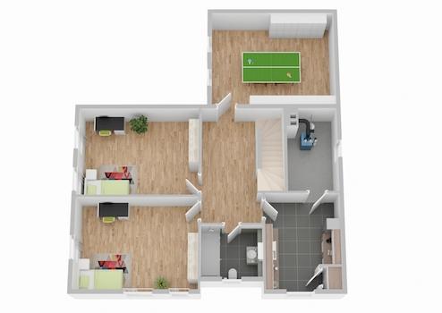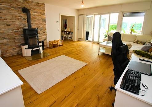 Im gesamten Haus wurden hochwertiger Laminatboden sowie edle Fliesen verlegt, die sowohl optisch als auch funktional überzeugen. 2-fach verglaste Kunststofffenster sorgen für eine gute Wärmedämmung und tragen zum angenehmen Wohnklima bei.